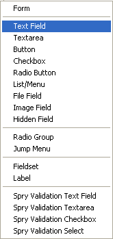 Select Insert > Form, and choose the corresponding form element you want to insert.